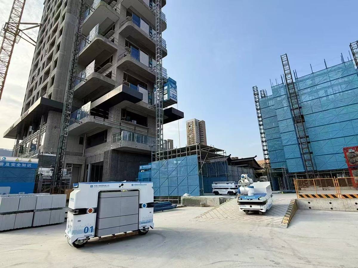 在施工现场,人工越来越少,“机器人工友”越来越多:实测实量机器人激光一扫,房间数据全出;巡检机器人搭载多光谱相机,每天自动检查塔吊“身体”有无裂纹;多类型物料运输车自主取货、乘梯、卸料,全程无人化。