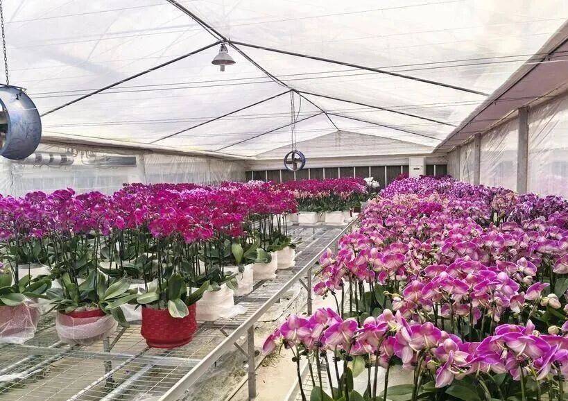 钟祥市柴湖镇的湖北壹鸣生物科技有限公司智能温室内,数万株蝴蝶兰竞相绽放。