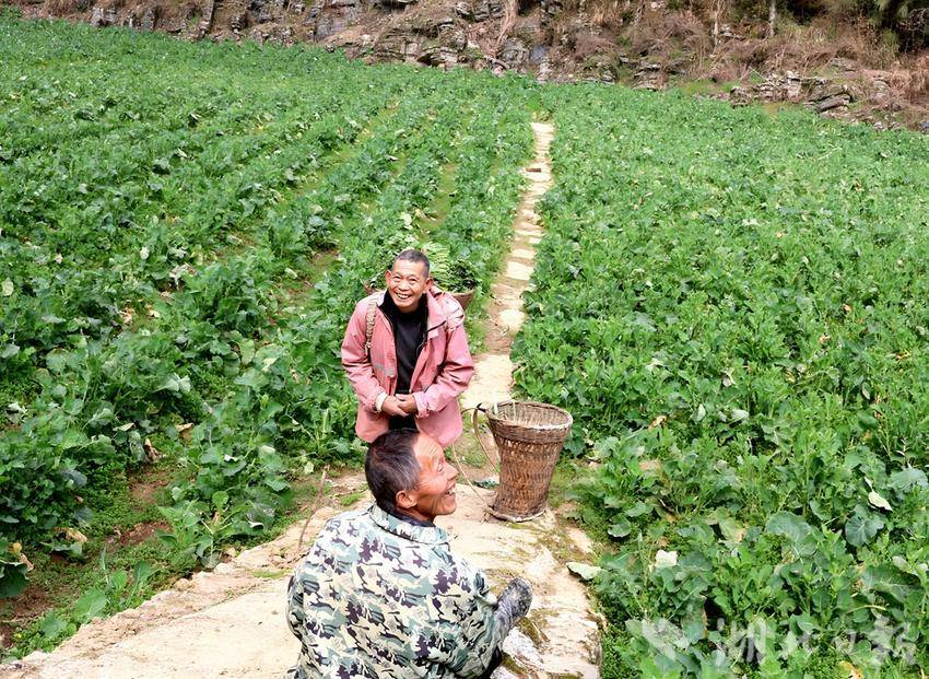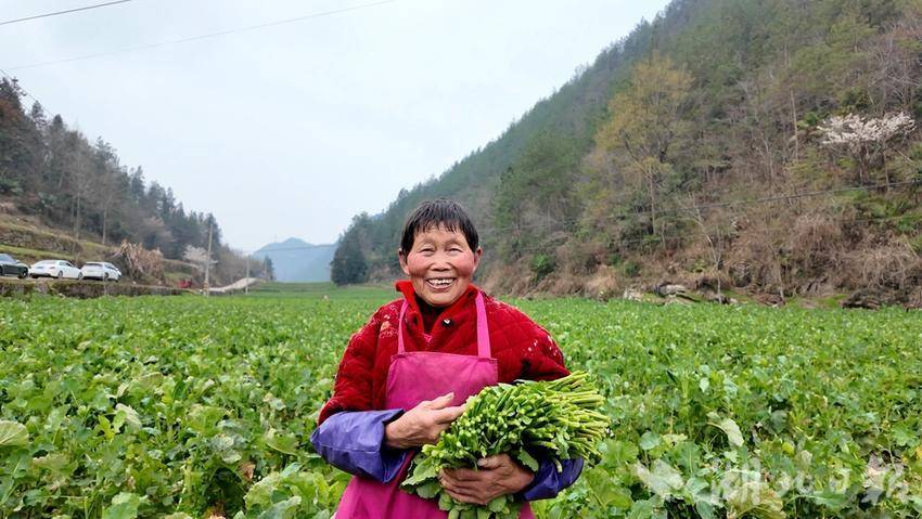 “在这里做工,一小时10块钱。我家里也种的3亩,光菜薹收益就有五千。等菜薹采摘完了,还能把地租出去,一块田有两份收入,这真的是搞得。”63岁的陈开银一边麻利地分选,一边笑着说。