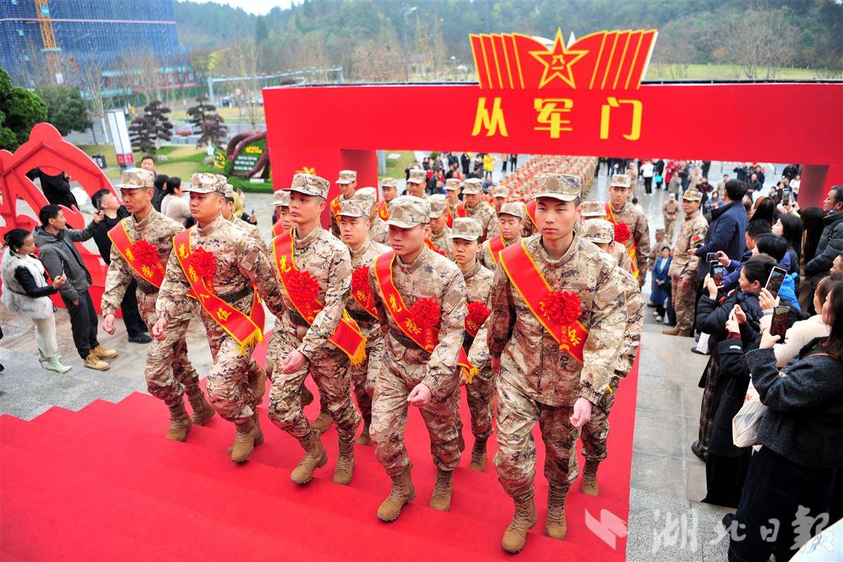 3月17日,宜昌市在夷陵文化中心举行2026年上半年新兵入伍欢送会,热烈欢送一批优秀青年奔赴军营,开启“戎耀启程、强军有我”的保家卫国光荣征程。据悉,2026年上半年新兵起运工作3月16日全面启动,各地隆重举行新兵入伍欢送仪式,预计3月底前所有新兵入营完毕。(视界网 张国荣 摄)