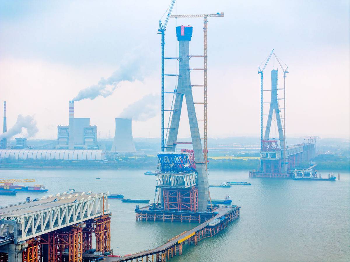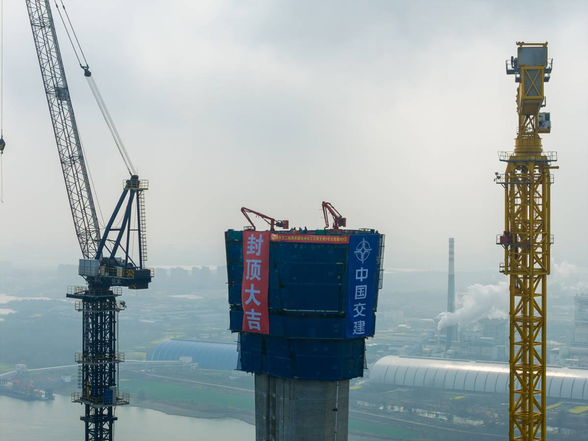 在鄂央企助力池州长江公铁大桥北主塔封顶