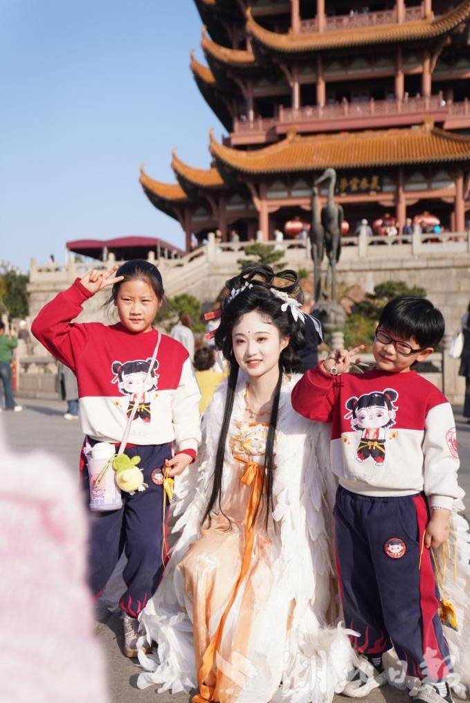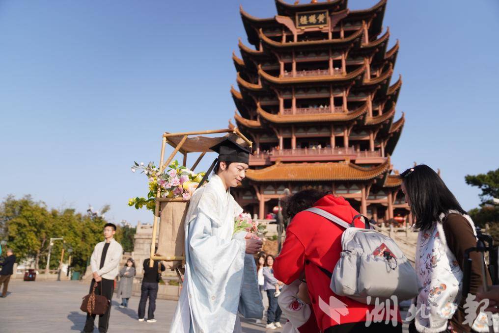 黄鹤楼春节期间推出的全员古装上岗仍在不断升级,游客入园即可“入戏”。本月初,黄鹤楼焕新上线《鹤舞长河》系列行进式实景演出,来黄鹤楼,一亭一景皆有演艺,步步是美景,处处是舞台。在鹅池、搁笔亭、落梅轩、跨鹤亭、瞰川亭等亭台,游客可邂逅琵琶、古筝、竹笛等小型器乐演奏及诗词互动、古典舞蹈等,实现“一步一画境,一曲一咏叹”的沉浸式游园体验。