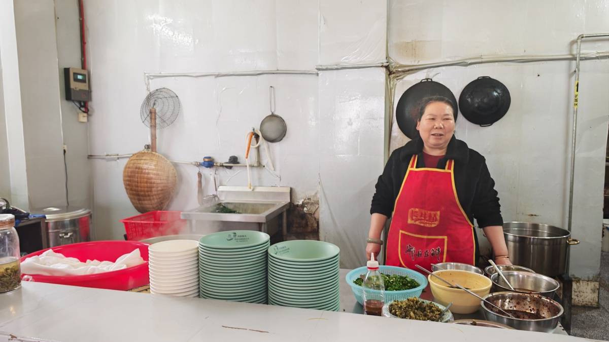 面馆负责人吴启春正在店内忙碌。(湖北日报全媒记者 高伊洛 摄)