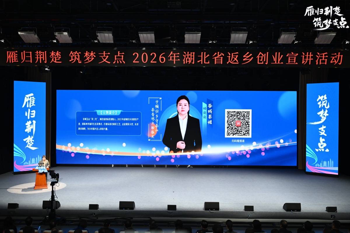 “爷爷的竹篓、父亲的铁锅,还有漫山遍野的茶树,构成了我童年最深的记忆……”3月19日,2026年湖北省“雁归荆楚·筑梦支点”返乡创业宣讲活动现场,湖北瑶池仙茗农业科技发展有限公司姚丽丽分享了她家三代种茶的故事。