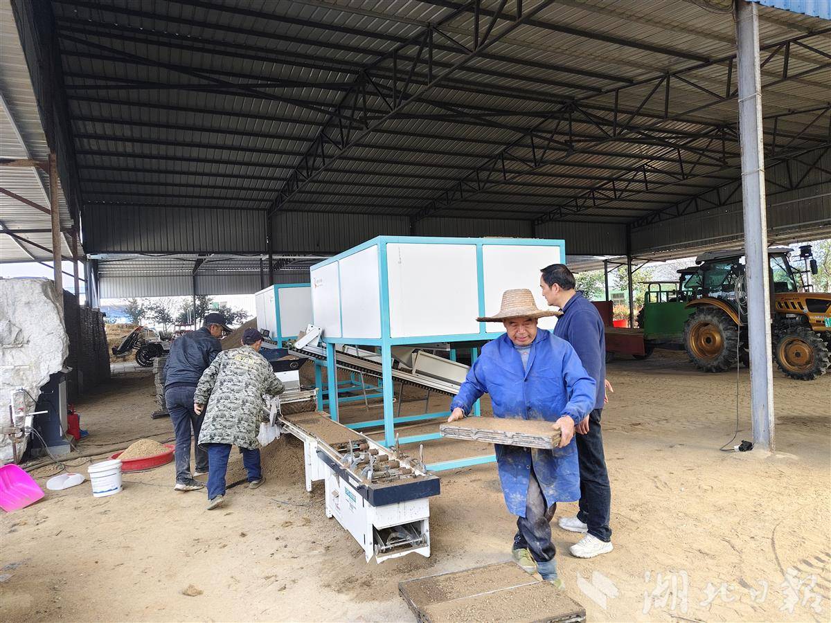 湖北日报讯(通讯员付向阳)又到一年春耕时,育秧是早稻生产的第一个环节,关系到后续的栽插作业和粮食产量。3月14日,笔者在英山县南河镇福辉农场看到,科技感扑面而来:流水线作业、暗室催芽、自动摆盘……育秧尽显“科技范儿”。工作人员正在大棚内将全自动化育秧机流水线制作好的秧盘,按照标准码放整齐,静待秧苗萌芽。