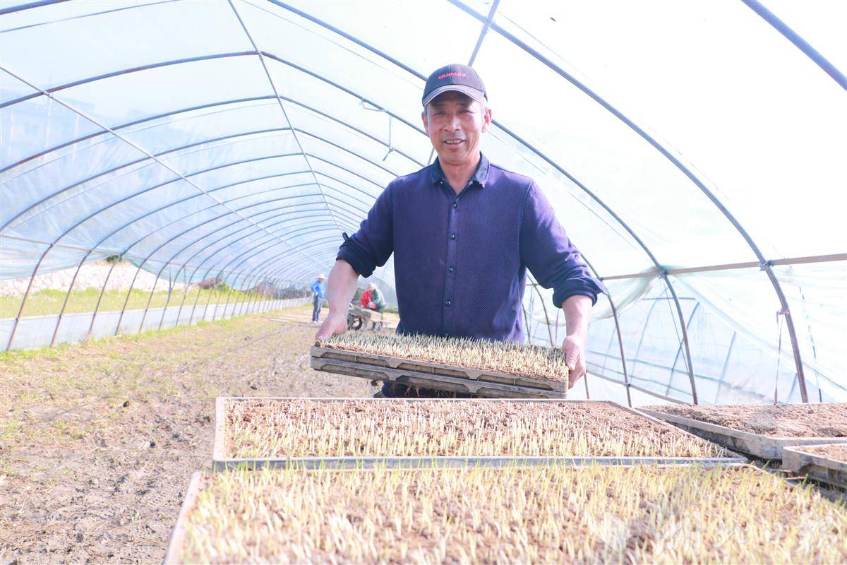 以往,农户都是在大田育秧,秧苗质量参差不齐,而且容易遭受“倒春寒”。近年来,随着土地托管、土地流转等农业社会化服务面积的增加,大田育秧方式已不能满足栽插需求。为适应现代农业需求,2024年该农场投资30多万元引进水稻育秧自动化流水线,将育秧从大田搬到了大棚。