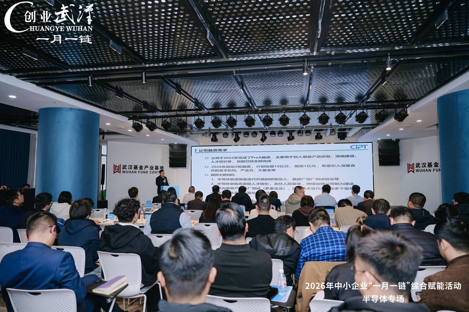 支点财经讯 3月19日下午,2026年中小企业“一月一链” 综合赋能活动半导体专场在武汉基金产业基地成功举办。