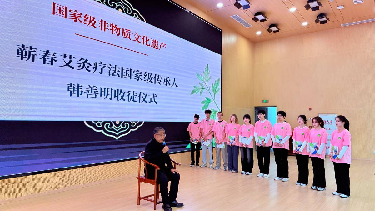 湖北日报讯(记者柯利华、通讯员丁帆、王伟)3月19日,国家级非物质文化遗产蕲春艾灸疗法代表性传承人韩善明在黄冈职业技术学院举行收徒仪式,该校的10名学子正式拜入师门,其中包括4名俄罗斯籍留学生。