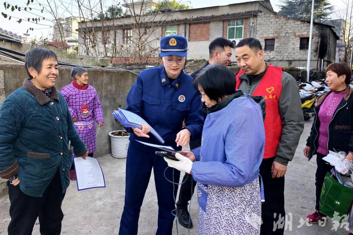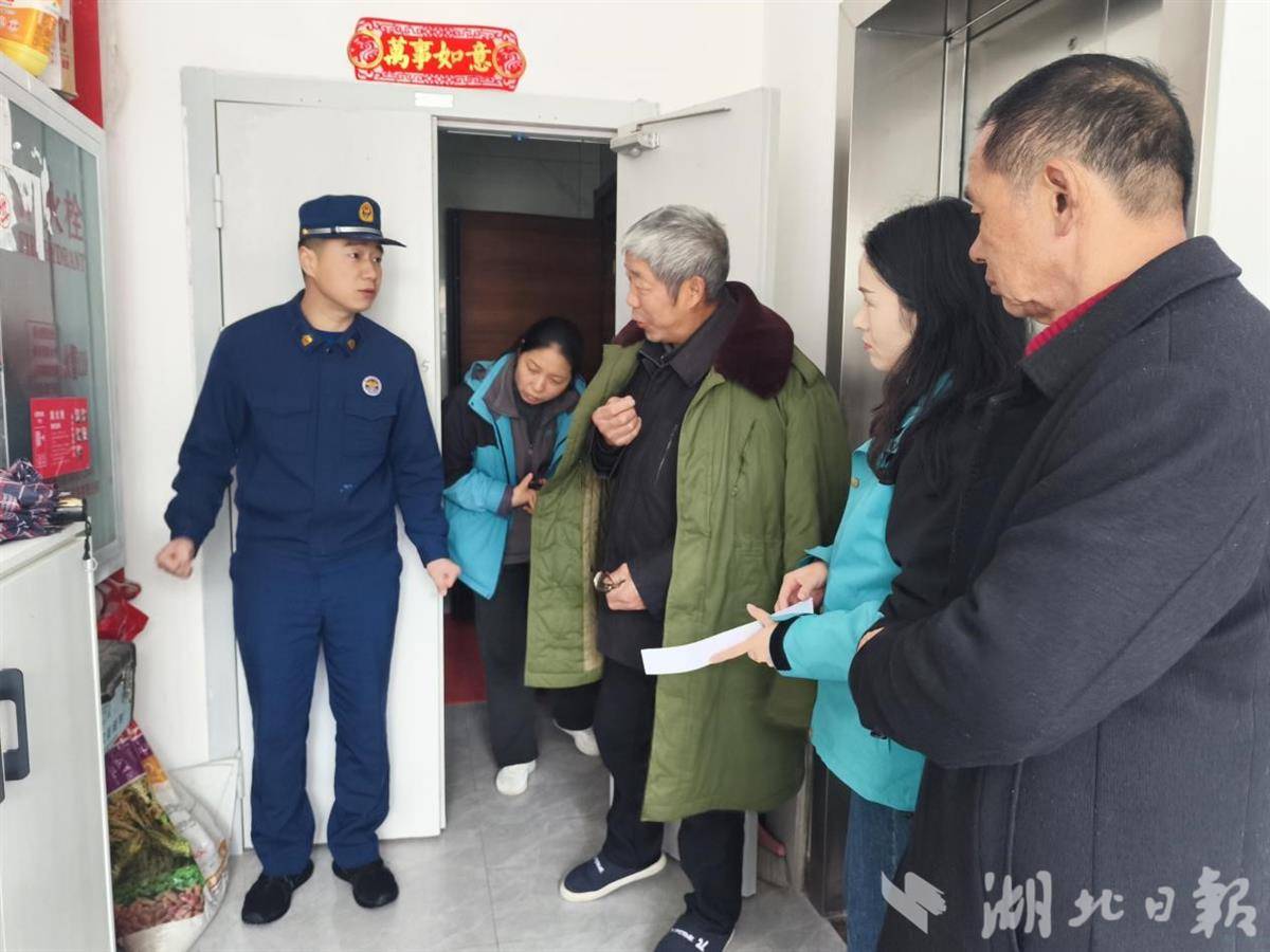 襄阳市保康县消防宣传员联合富鑫尚品小区物业、志愿者向居民普及春季防火知识。张纪文/摄