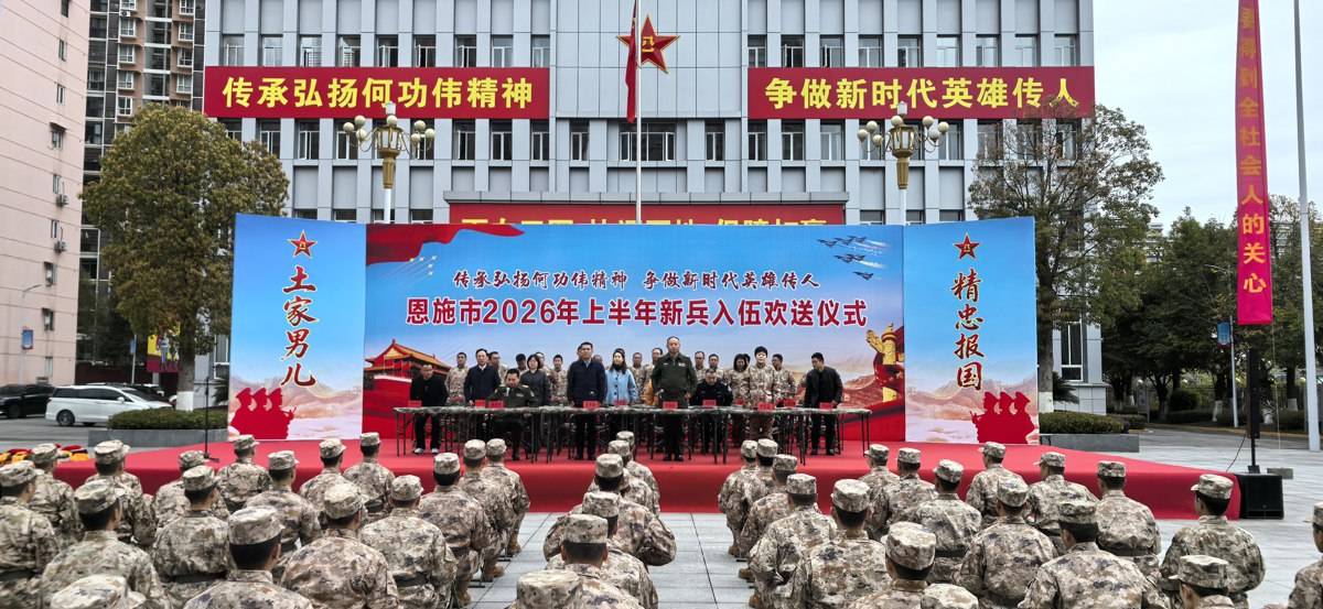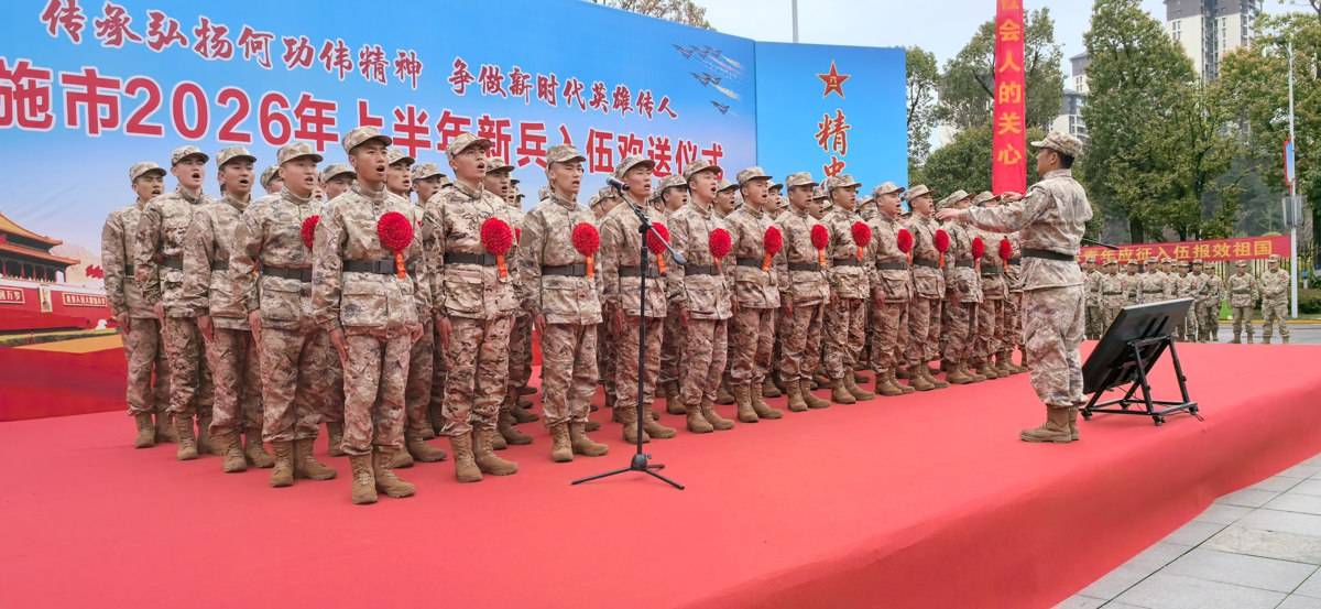 3月19日,恩施市人民武装部举行2026年上半年新兵入伍欢送仪式。新兵们戴上胸花、绶带,高唱军歌,和亲人朋友告别,踏上从军之路。