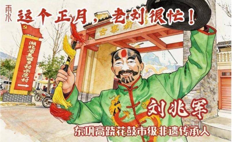作品以漫画的形式,讲述了南漳县东巩镇,高跷花鼓代代相传的蓬勃生命力,如春雨般“润物细无声”,给“雨水”节气赋予了别样的民俗韵味。