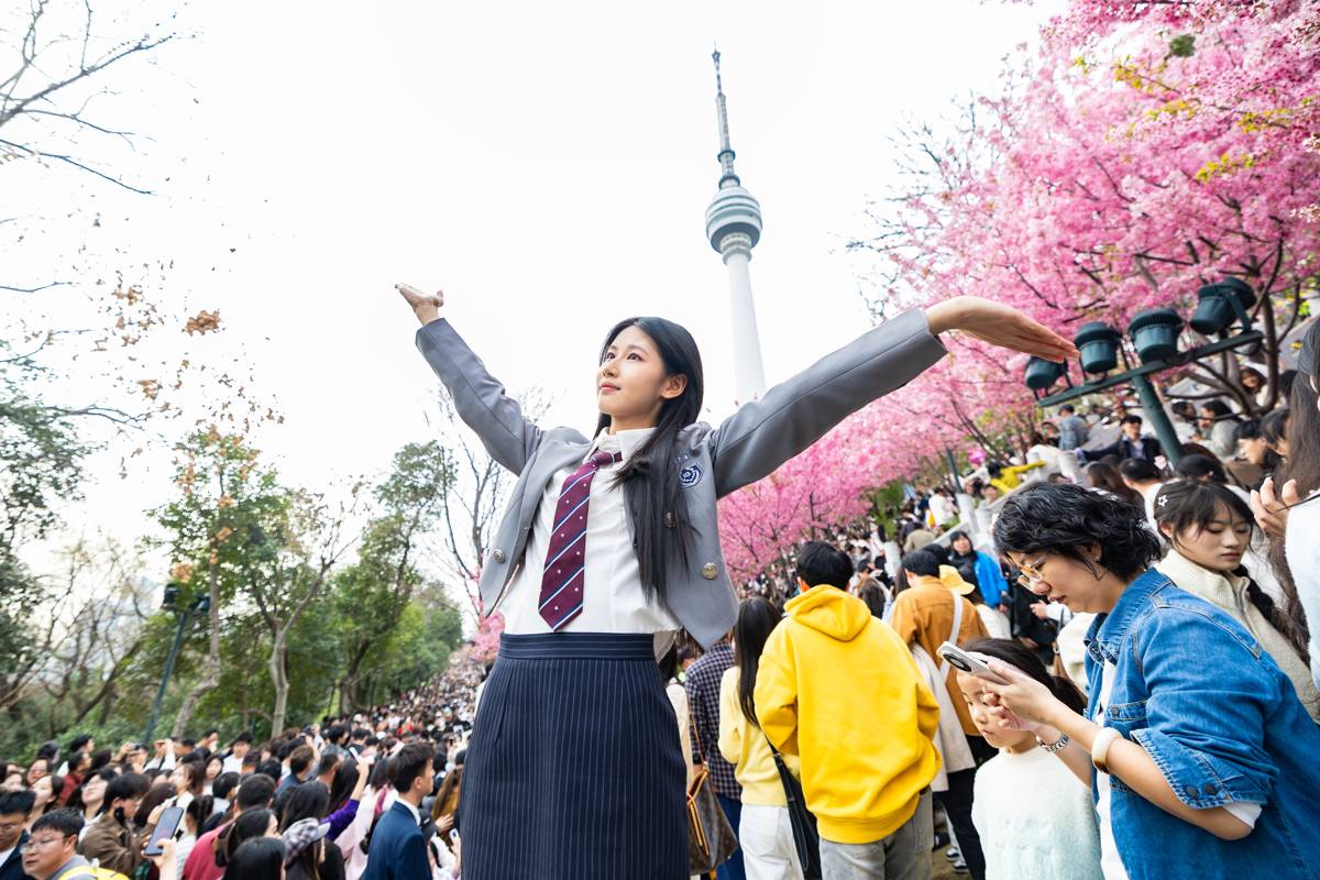 作为世界三大赏樱胜地之一,东湖樱花园永远是武汉樱花季的重头戏。万余株樱花、100多个品种,今年北区更是扩容30余亩,新增了“中国樱花品种区”。虹桥、经心书院、空中栈道、浔樱花涧……每一处都是绝佳打卡点。而当夜幕降临,闻名全国的“夜樱”光影秀点亮整片樱海,堪称“樱海夜倾城”,如梦似幻。