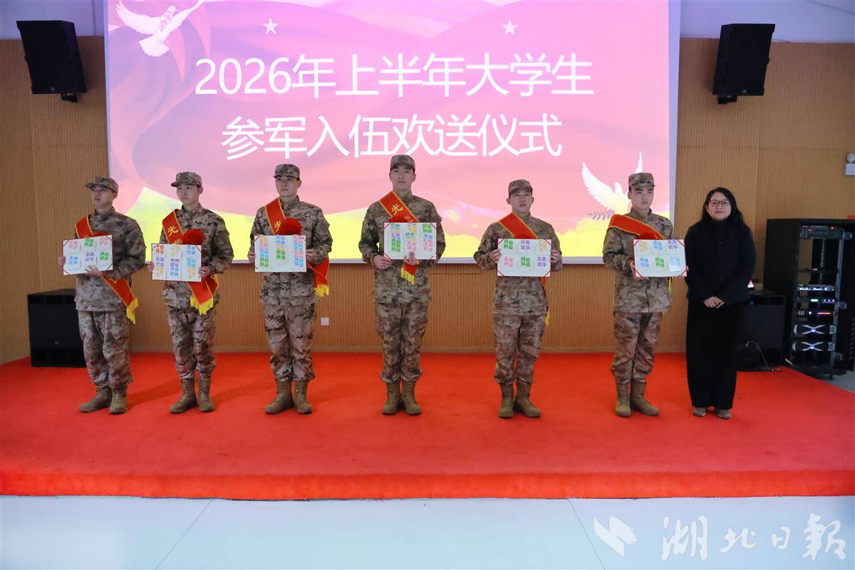 湖北建院53名大学生新兵在欢送仪式上。
