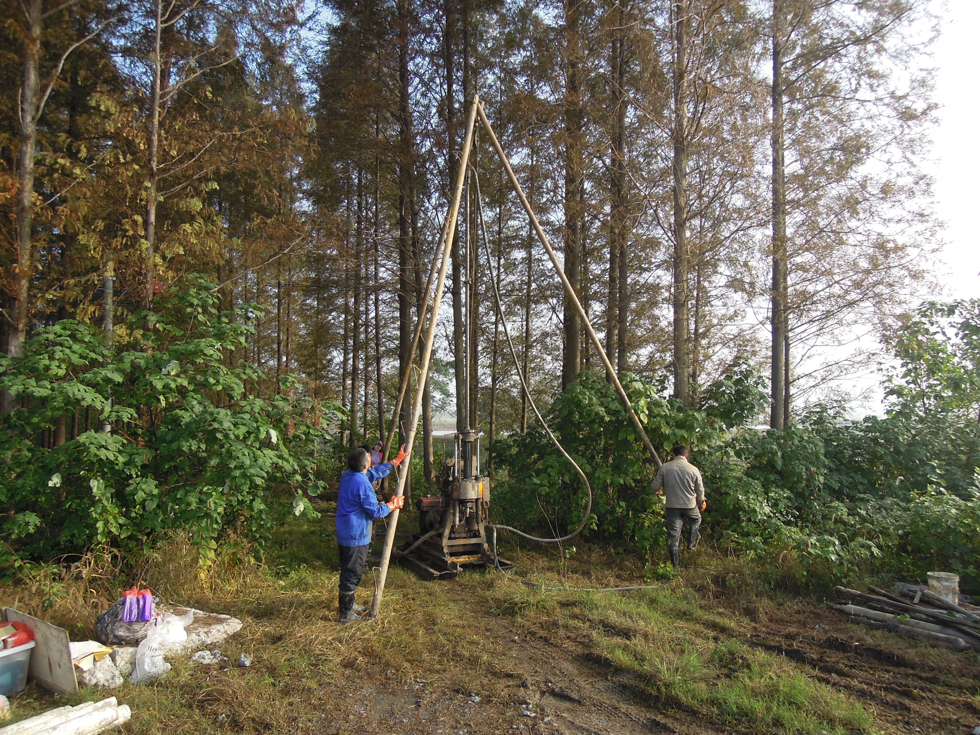 团队请工程队打钻孔获取岩心样本。受访团队供图