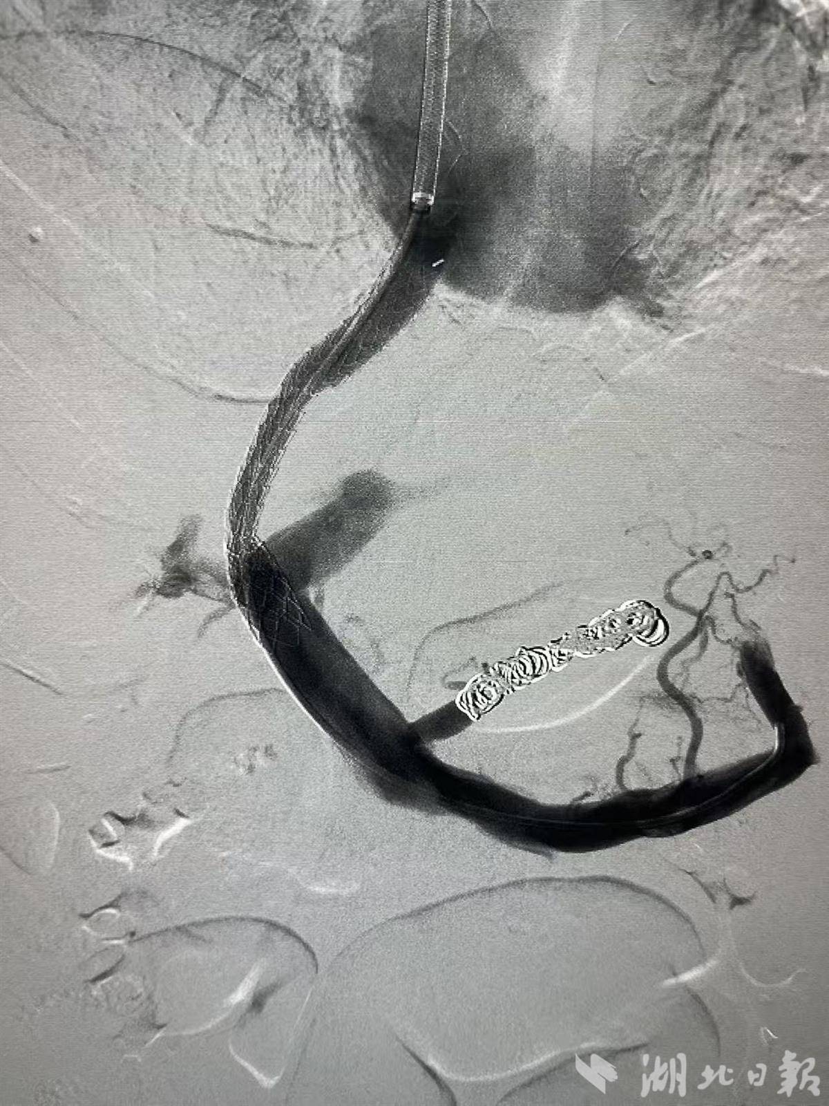 湖北日报讯(记者曾莉、通讯员胡梦、曾潇潇)近日,一位肝硬化患者在短时间内接连遭遇顽固性腹水与致命性呕血的双重打击,生命垂危。面对这一门静脉高压并发症的严峻挑战,湖北省中医院(湖北中医药大学附属医院)肝病科与放射科专家团队联手为他实施高精度介入治疗,挽救了患者生命。