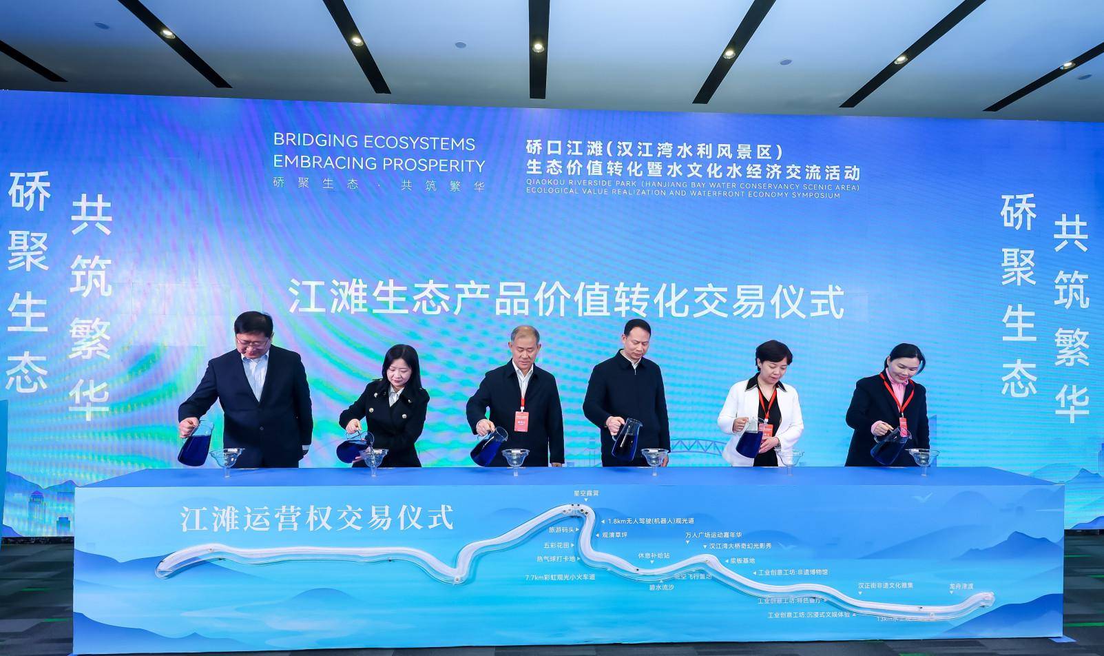 湖北日报讯 (记者艾红霞、通讯员李颖、高媛、窦亦然、实习生张斓馨)3月20日,硚口汉江湾江滩生态产品价值交易签约仪式在武汉举行,这是全国首单城市河湖型水利风景区生态产品价值交易。此次交易以汉江湾30年水生态产品维护和经营权为标的,最终以6.06亿元成交,创下湖北省水生态产品价值转化的最高纪录。