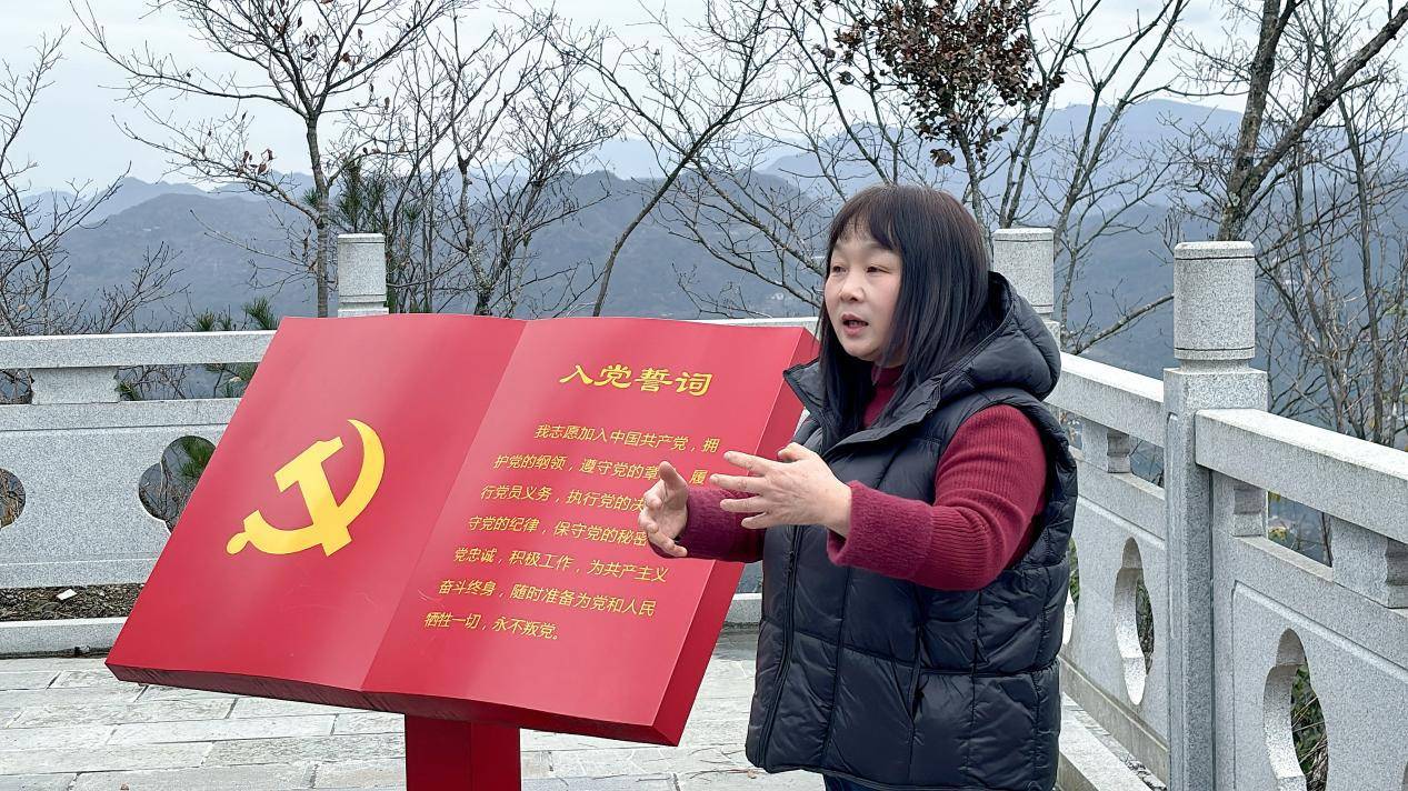 全体党员来到娃娃寨,在苍松翠柏的见证下,面对鲜红党旗,由野花坪村党支部党委委员肖华领誓,重温入党誓词,追忆烈士忠魂。