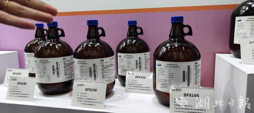 ▲活动现场展示的高端晶圆光刻胶样品。湖北日报全媒记者 汪洋 摄