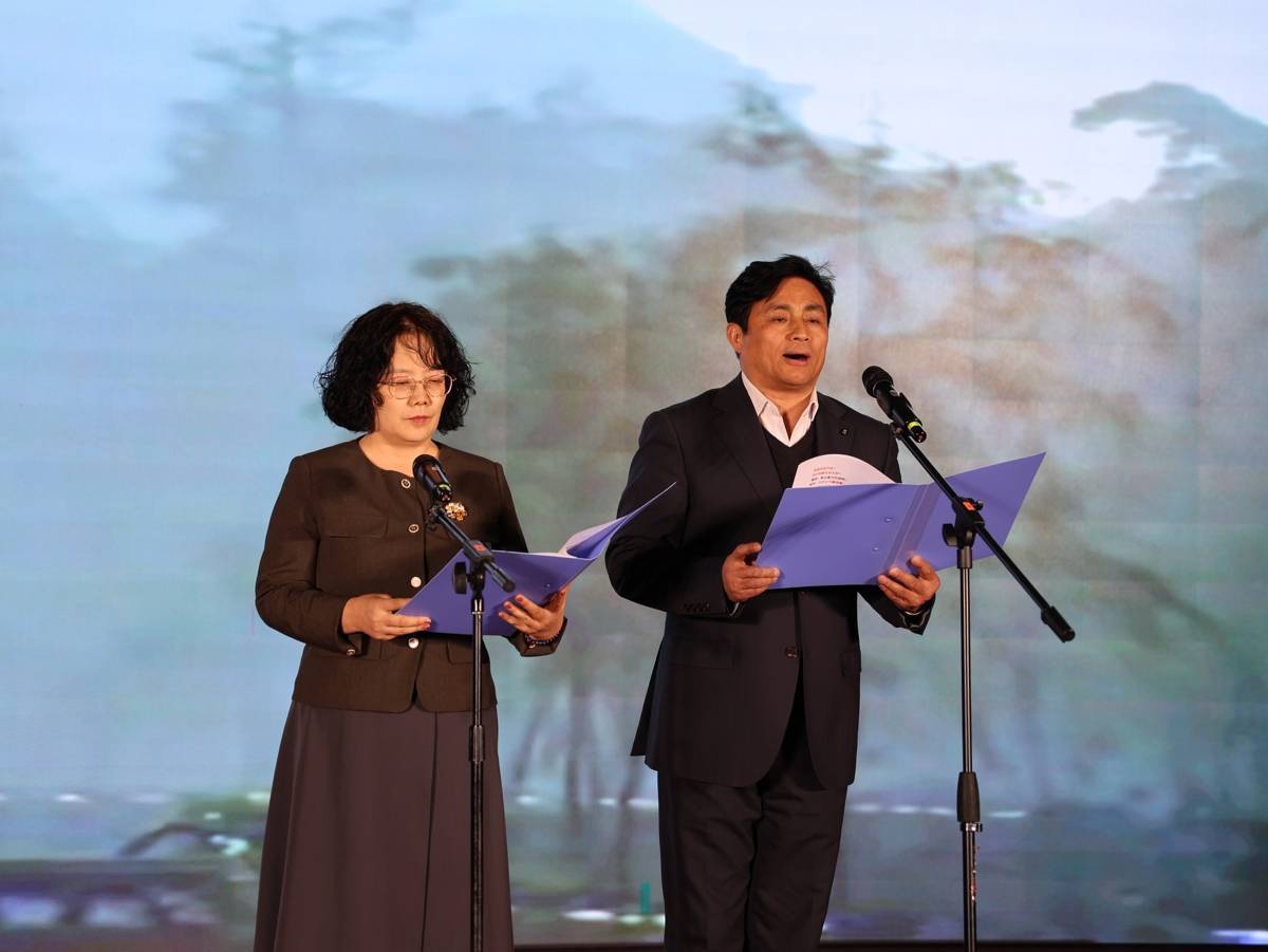 民盟清华大学委员会王文芳、胡胜朗诵《园内》。(湖北日报全媒记者刘毅摄)