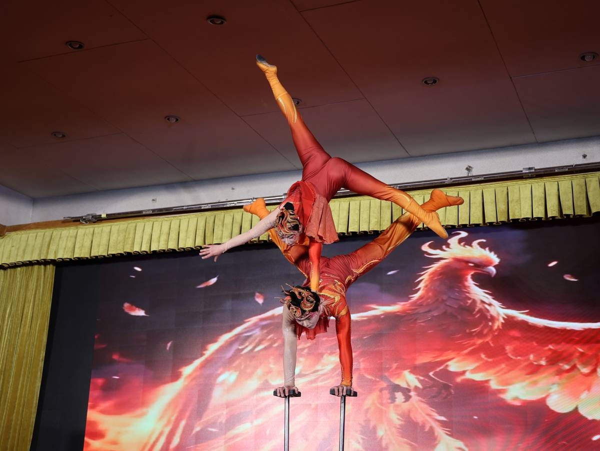 浠水杂技团表演杂技《凤凰涅槃》。(湖北日报全媒记者刘毅摄)