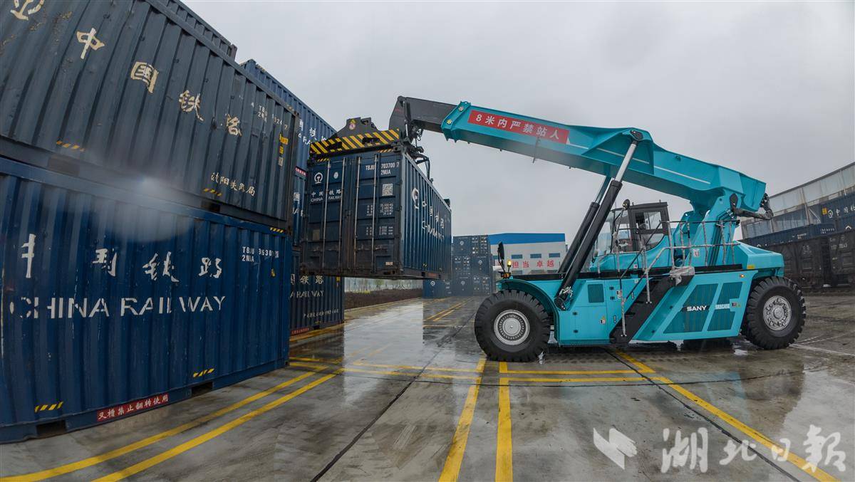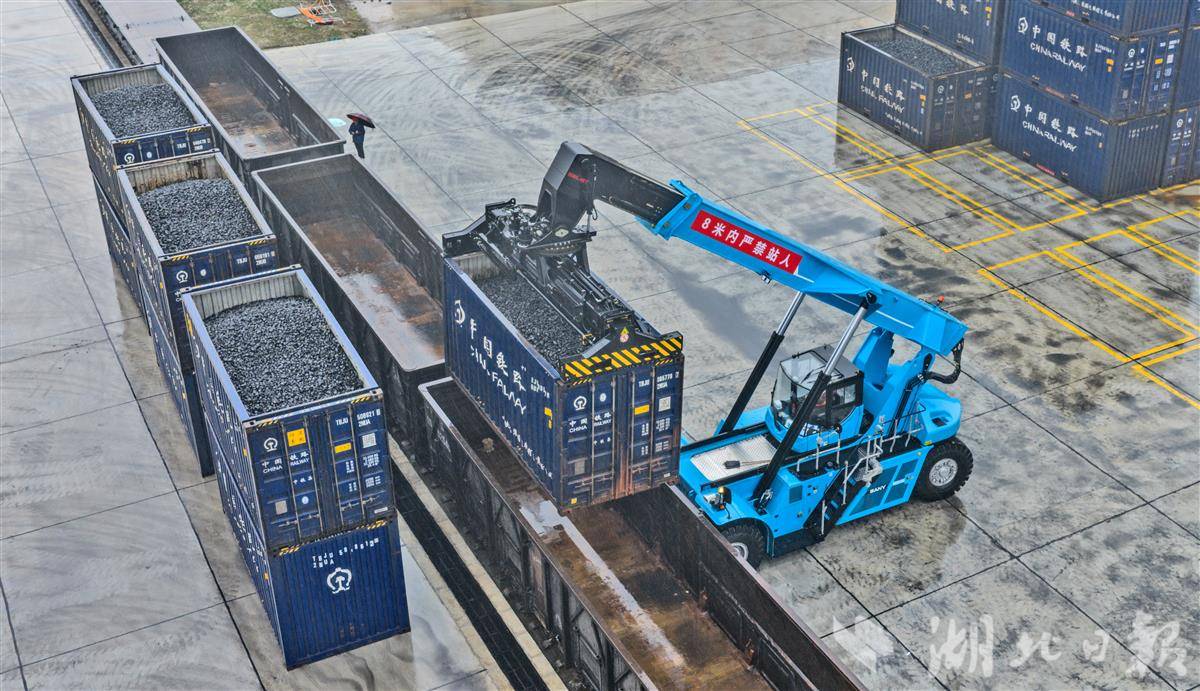 3月17日,枝江市杨家垱铁路枢纽起重车长臂灵活装载煤炭集装箱。这片热闹的枢纽,前身是闲置五年的湖北化肥厂专用线。经过改造升级,该线路于今年3月9日正式恢复运营,如今已焕发新生,年集装箱到发量可达200万吨,运输品类涵盖煤、石油焦、磷矿石、钢材等工业大宗物资。此次焕新不仅填补了枝江城区及产业园区铁路货运的空白,更以“高效+低成本”的核心优势,为当地工业企业大宗物流运输提供了坚实保障。作为重要物流节点,该枢纽通过衔接焦柳铁路与长江港口,有效打通了物资流通堵点,为宜昌构建“铁路+公路+水运”多式联运体系注入新活力。据悉,二期改造完成后,枢纽年货运量将突破800万吨,年新增物流收入超1亿元。未来,这里还将拓展“铁路+仓储”“铁路+金融”“铁路+贸易”等多元业态,推动枢纽从“服务枝江”向“辐射全国”稳步升级。(湖北日报全媒记者 刘曙松 通讯员 郑子贤 黄路遥 摄)