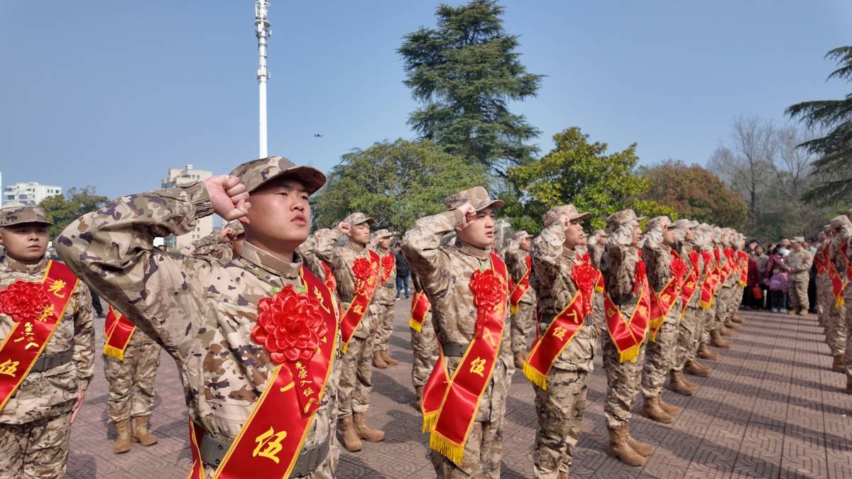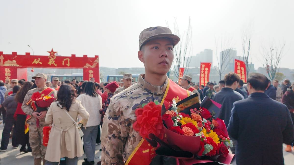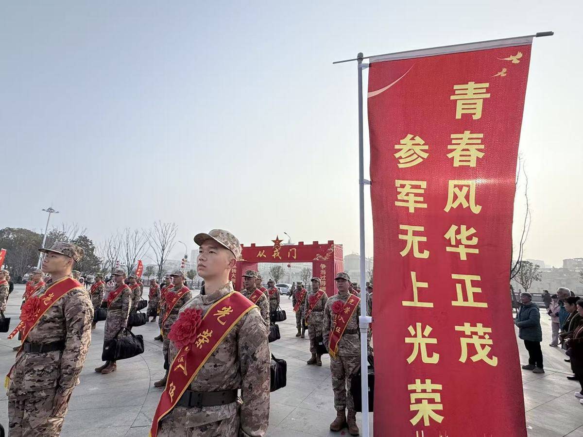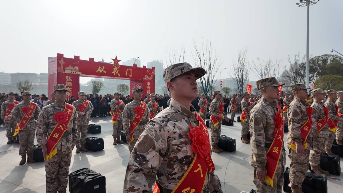 身着戎装、肩披绶带、胸佩红花的新兵们精神抖擞地踏入“从戎门”,带着家乡人民的殷切期盼与美好祝福,开启保家卫国的光荣征程。