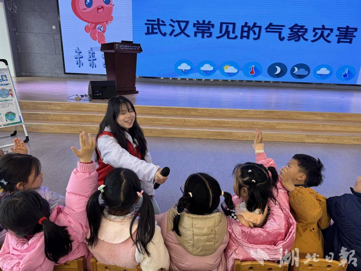 湖北日报讯(通讯员尤雪、贺洁、陆鹏程)3月19日,在第66个世界气象日来临之际,武汉东湖新技术开发区气象局科普志愿者走进光谷中心幼儿园,开展“智慧气象 童心探秘”主题活动,让萌娃们在趣味互动中解锁气象奥秘、学习避险知识。