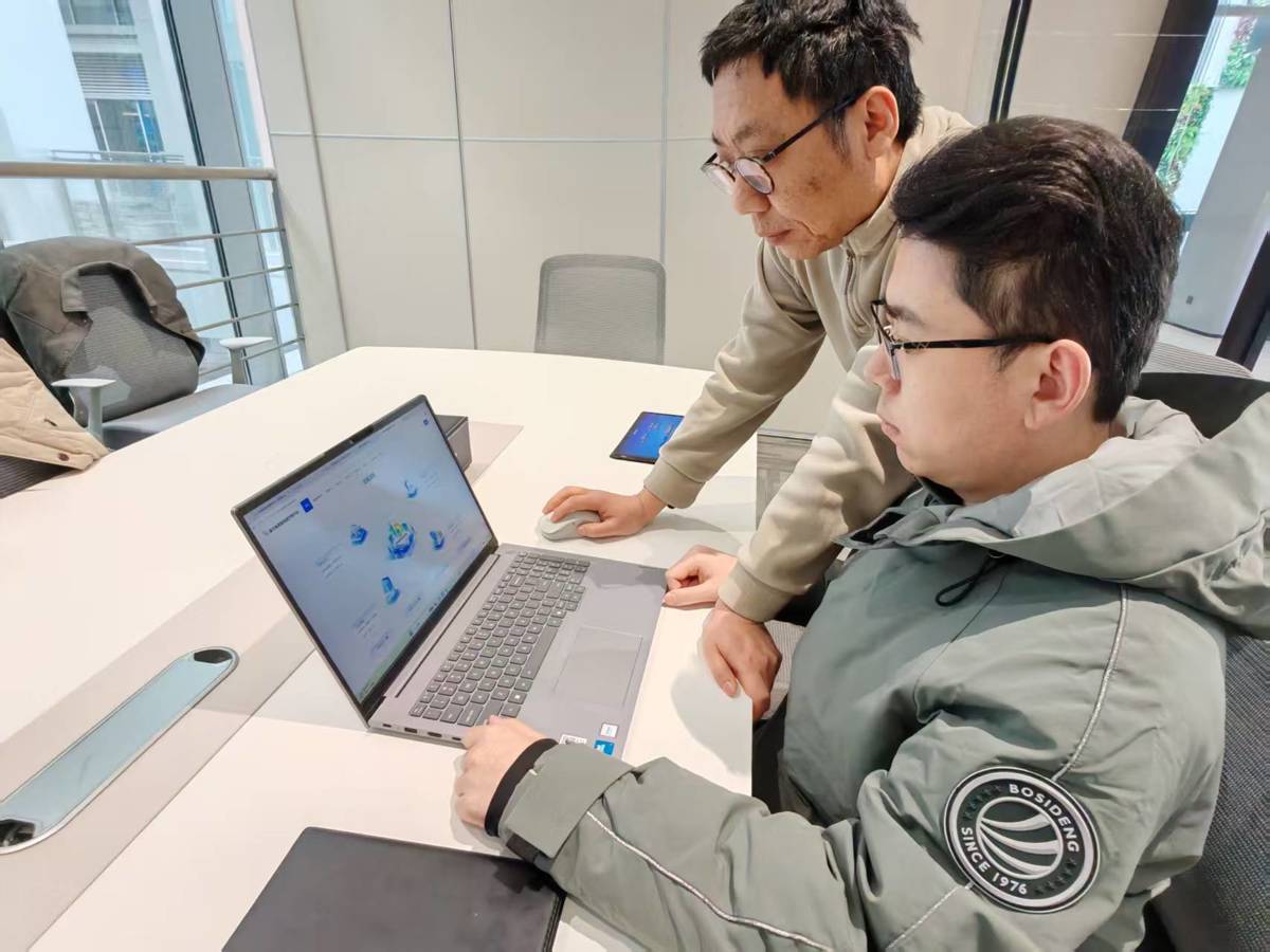 3月17日,中数服公司,古伟与同事研讨业务。(湖北日报全媒记者戴文辉摄)