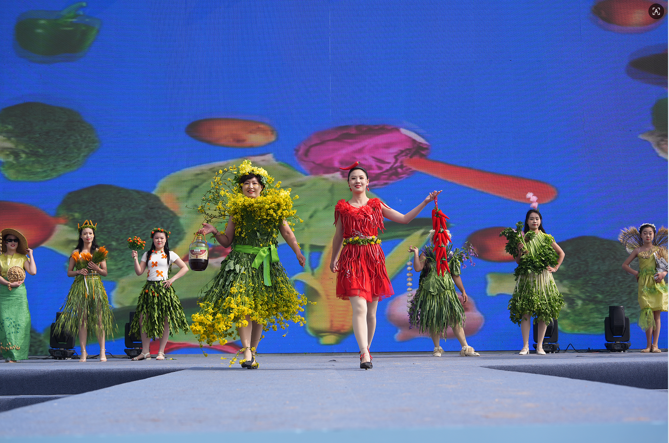 活动现场,一场摆在油菜地里的乡村时装秀“嗨”翻全场,让游客和乡亲一饱眼福。油菜花、大白菜、芹菜和节节根都上了身,木犁、手推车、竹箩筐、蓑衣……成为打动大伙最温情的道具,当然更少不了“关公”来凑热闹,“秀”到大家的心坎里。