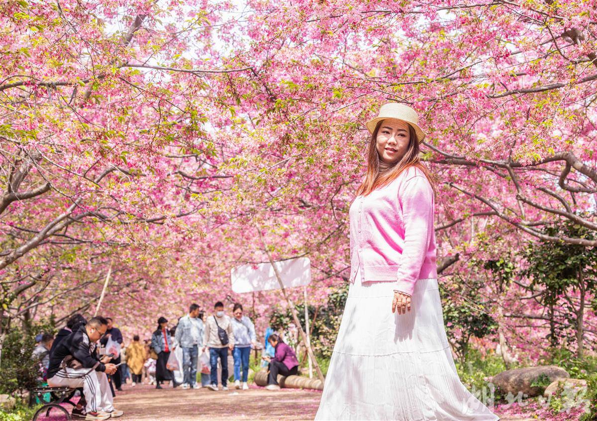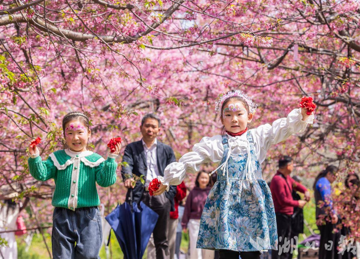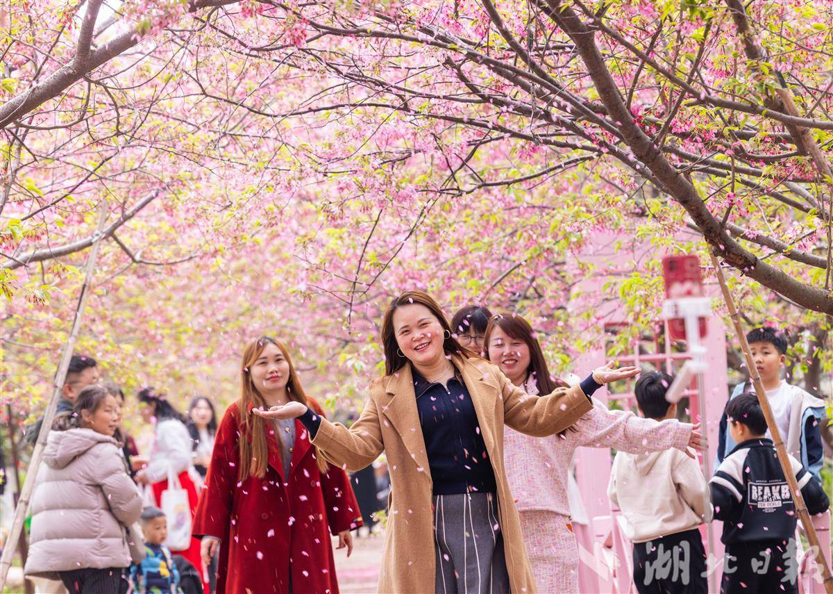 3月21日,武汉长江新区楚风樱海园内,前来赏樱打卡、休闲游玩的游客络绎不绝。这片占地400余亩的樱园栽种两万余株、40多个品种樱花,花期接力长达50余天,打造沉浸式旅拍景观,成为春日热门打卡地。园区依托樱花经济,带动周边就业与农产品销售,农文旅融合发展,点亮乡村春日旅游,助力乡村振兴。(湖北日报全媒记者 薛婷 通讯员 曾格玉 王谦 摄)