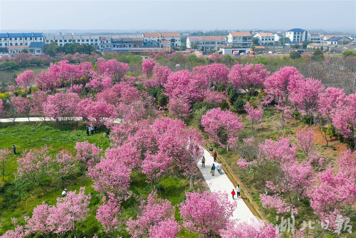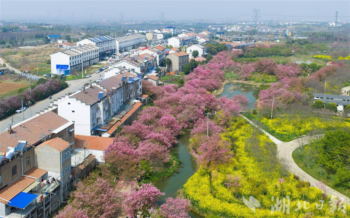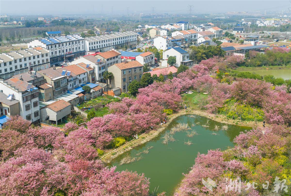 3月21日,鸟瞰武汉长江新区楚风樱海园。