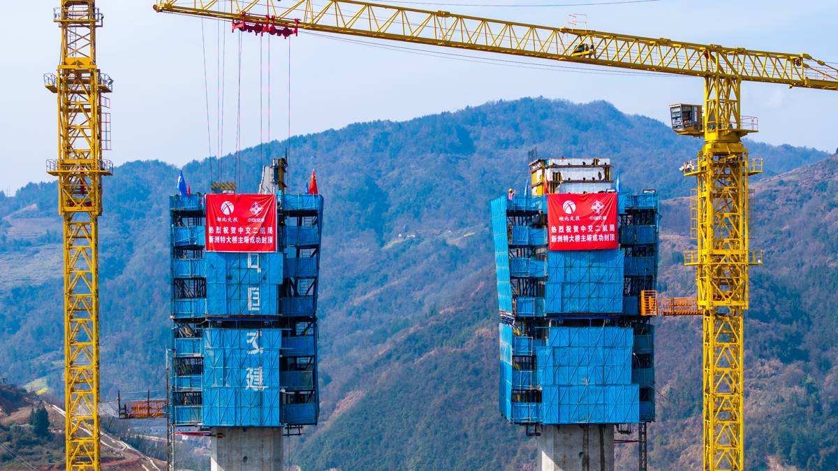 湖北日报讯 (记者戴辉、通讯员李怀智、张良辉)3月20日,由湖北交投集团投资、中交二航局承建的十巫南高速关键控制性工程——新洲特大桥主塔顺利封顶。