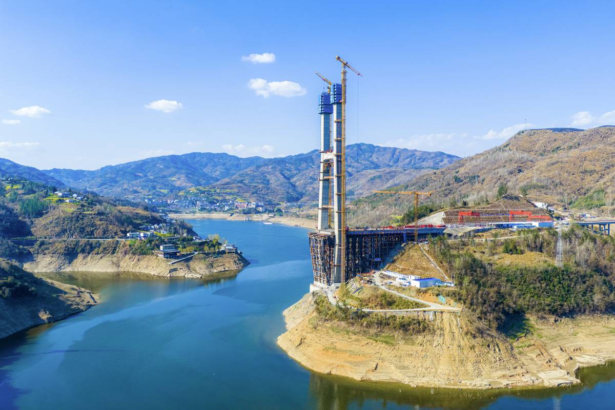 十巫南高速公路起于湖北省十堰市竹山县溢水镇,止于陕西省安康市镇坪县钟宝镇,跨两省三县七乡镇,路线全长84.9公里。由中交二航局承建的第二合同段位于湖北省十堰市竹溪县潘口水库库区范围内,路线全长约9.01公里。其中,新洲特大桥是全线关键控制性工程,全长569米,主跨340米,主塔高201.5米,大桥采用“梁塔分离、梁台固结”的部分地锚式结构体系,主梁与地锚式桥台固结,是世界最大跨径单塔部分地锚式斜拉桥。