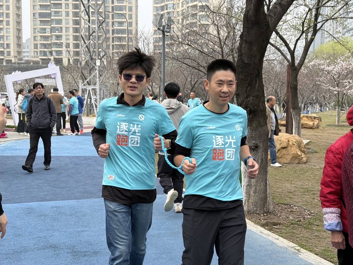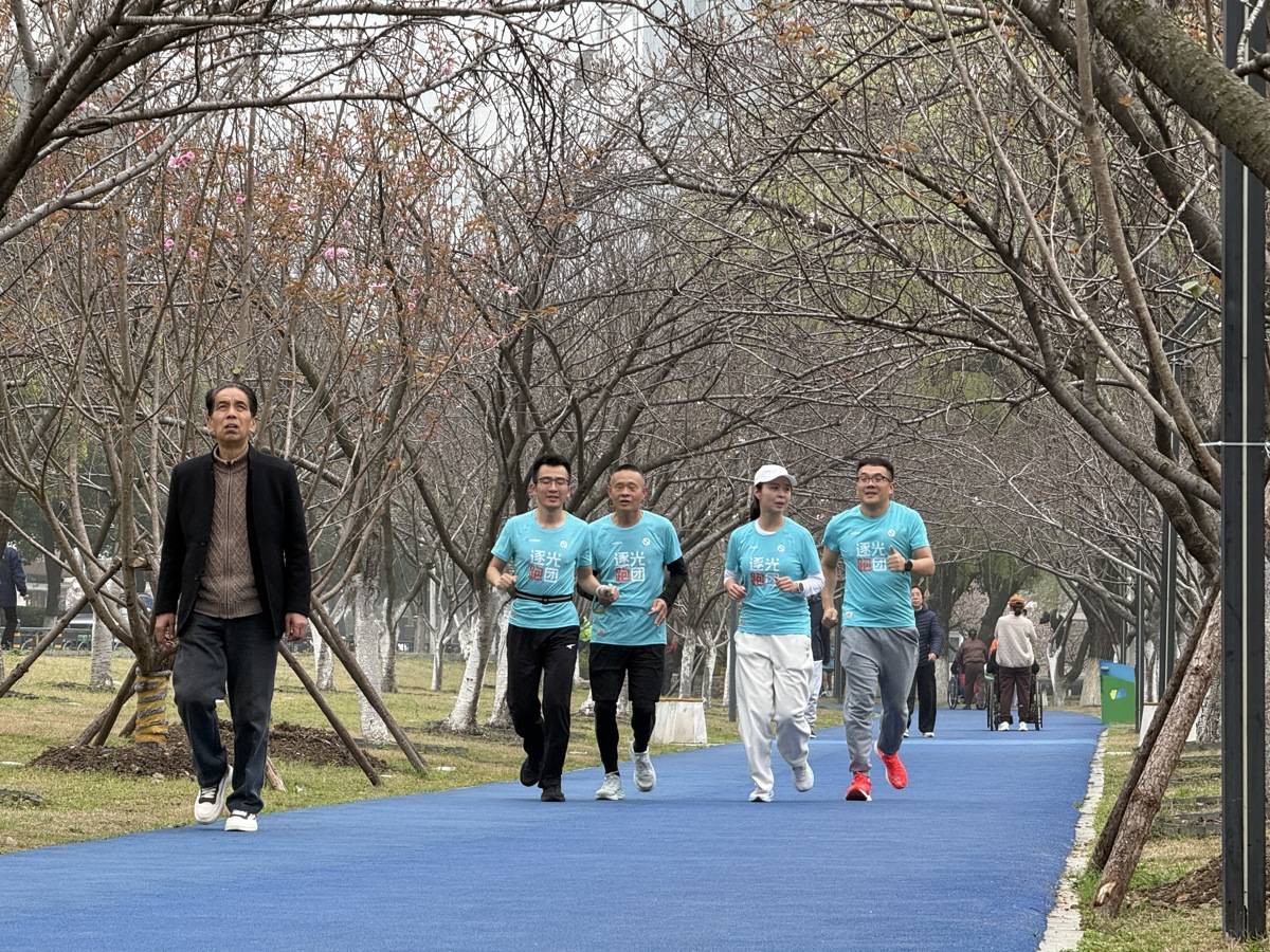 2026年3月21日,武汉马拉松开赛在即,在西北湖边志愿者们与6名视觉、听觉障碍跑者一同完成最后一次赛前集训。(湖北日报全媒记者 倪娜 通讯员 马威 摄)