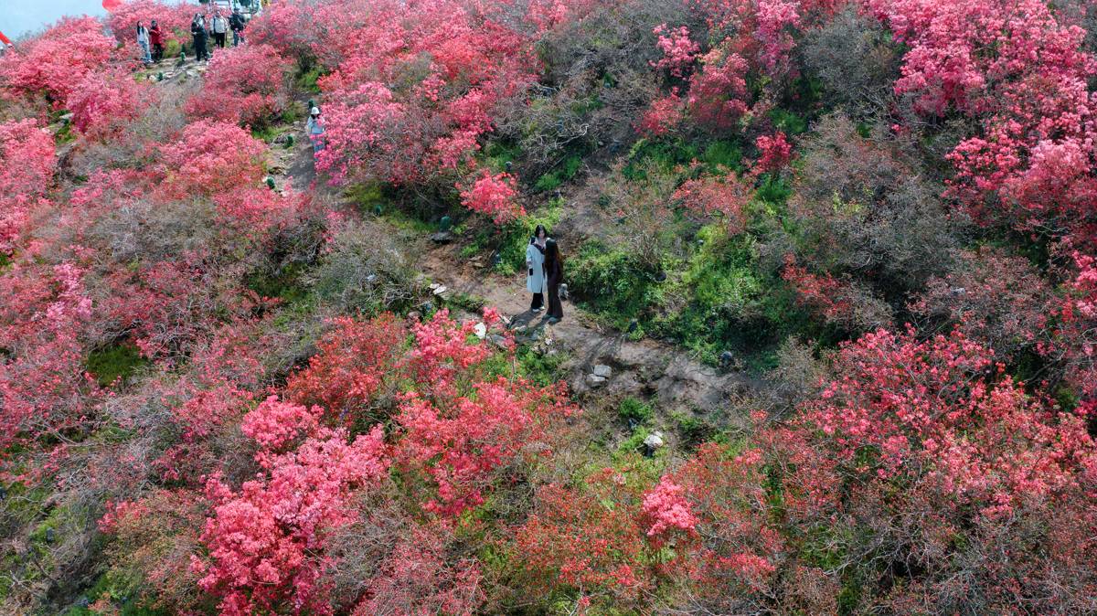 湖北日报讯 (记者黄磊、通讯员黄宣、实习生曾令嘉、丁亿帑)3月21日,武汉黄陂木兰云雾山第17届杜鹃花赏花嘉年华正式启幕。当前,初春的云雾山已是一片绝美花海,花宇山和花海景点的杜鹃花已率先绽放。