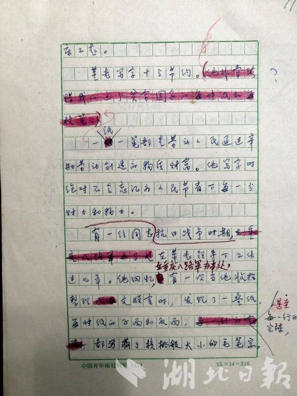 董老写字十分节约。他认为一纸一笔,都是劳动人民通过辛勤劳动创造的物质财富。