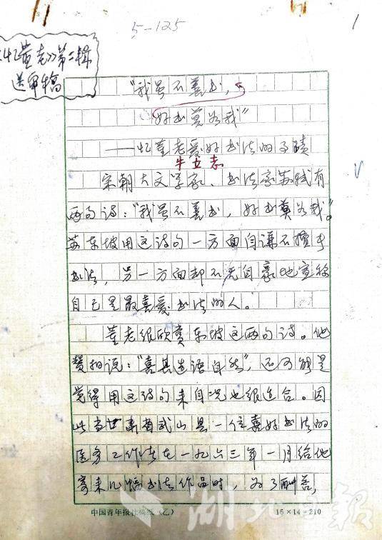 有时他也从商店里买回小学生的大字练习本写字。当然,照老规矩每一本都要写满最后一页才算完。绝不能剩下一些空页不写就丢掉,这仍是他一贯严格遵循的“物尽其用”的原则,决不浪费人民用血汗创造的劳动成果,哪怕是一篇一页,一点一滴。