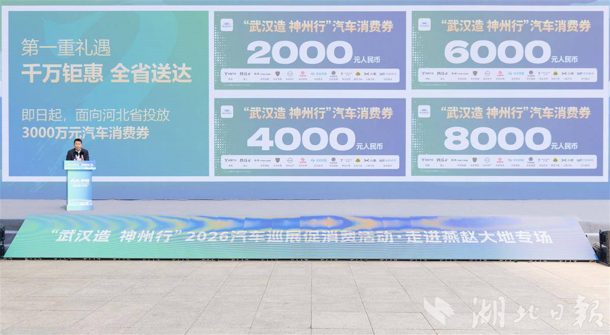 湖北日报讯(记者杨然、通讯员蒋秋雨、李岿)3月21日,“武汉造 神州行”2026汽车巡展促消费活动·走进燕赵大地专场在河北廊坊举行,车谷汽车消费券首次落地燕赵大地,实现“一券全省通享”。