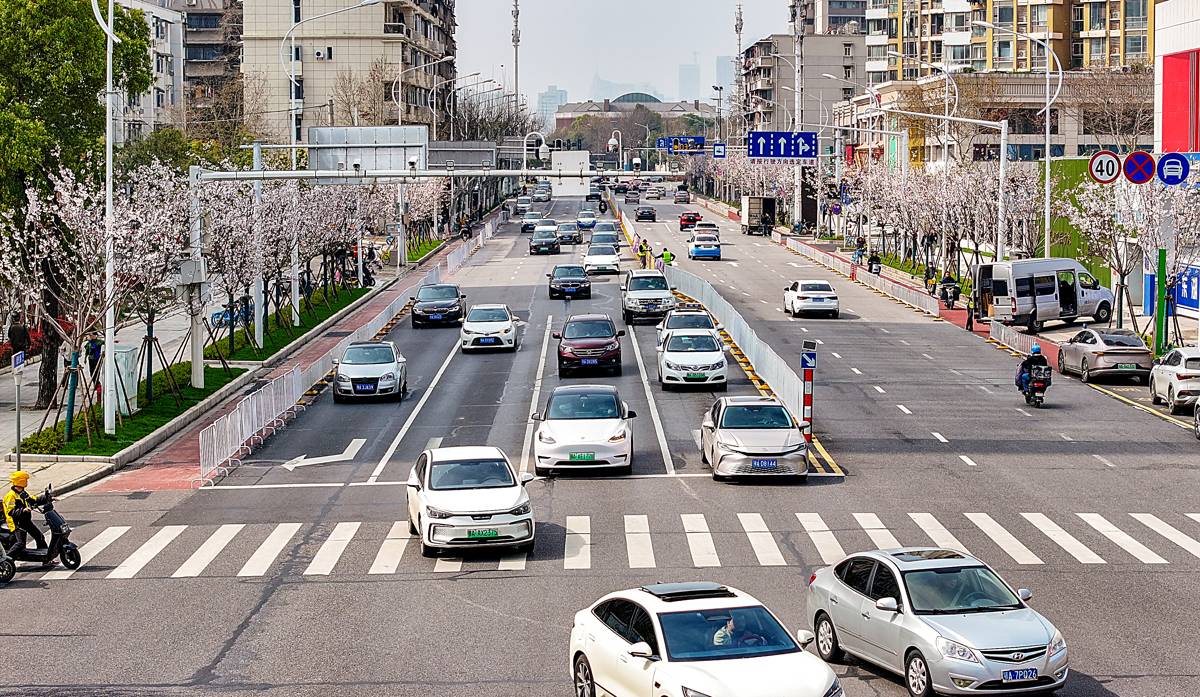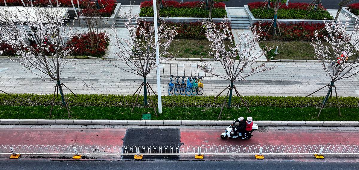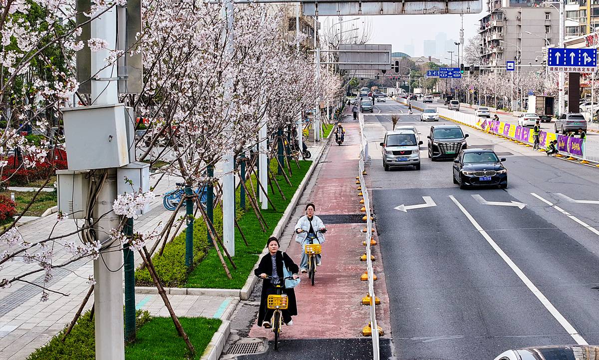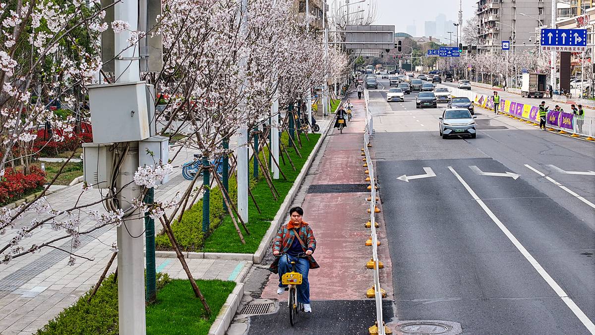 3月21日,汉马最美赛道——新生路的100余株樱花已盛开,次日,汉马参赛选手将从这里的樱花树下跑过。