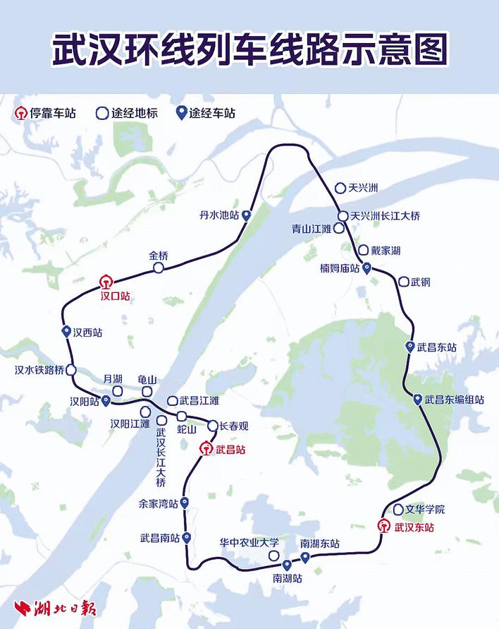 武汉环线列车线路示意图。