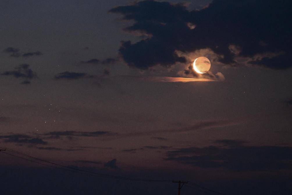这是2025年8月16日在黑龙江省同江市拍摄的下弦月斜穿昴星团。新华社发(刘万平 摄)