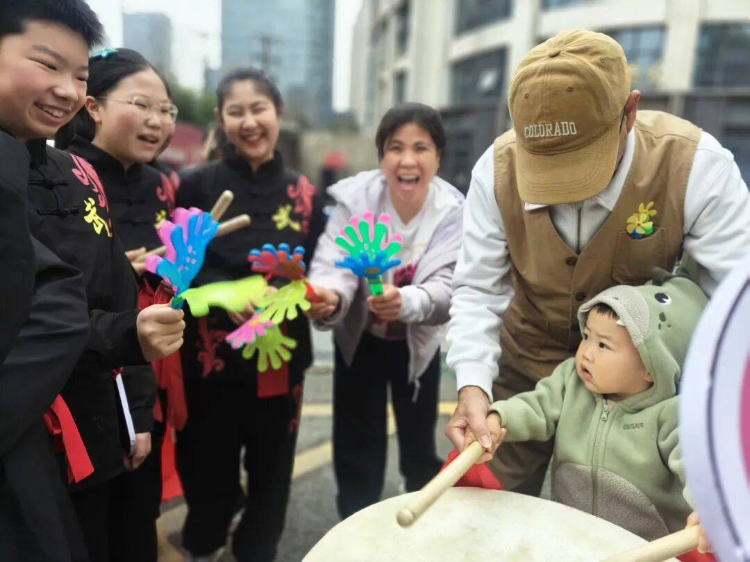 武汉市新河街学校学子擂鼓为汉马打气,萌娃也来加油。