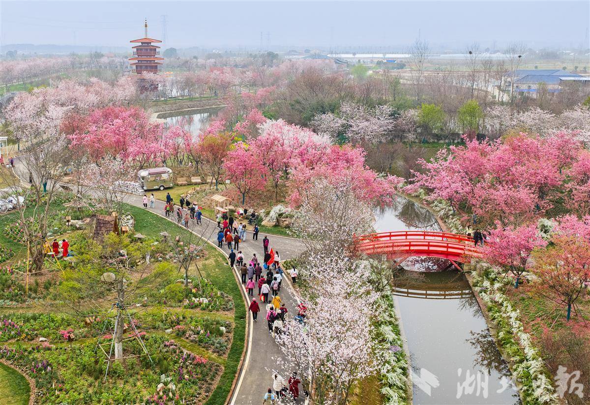 3月21日,武汉花仙境景区,樱花与郁金香竞相绽放,游客徜徉花海乐享春光。(湖北日报全媒记者 薛婷 摄)