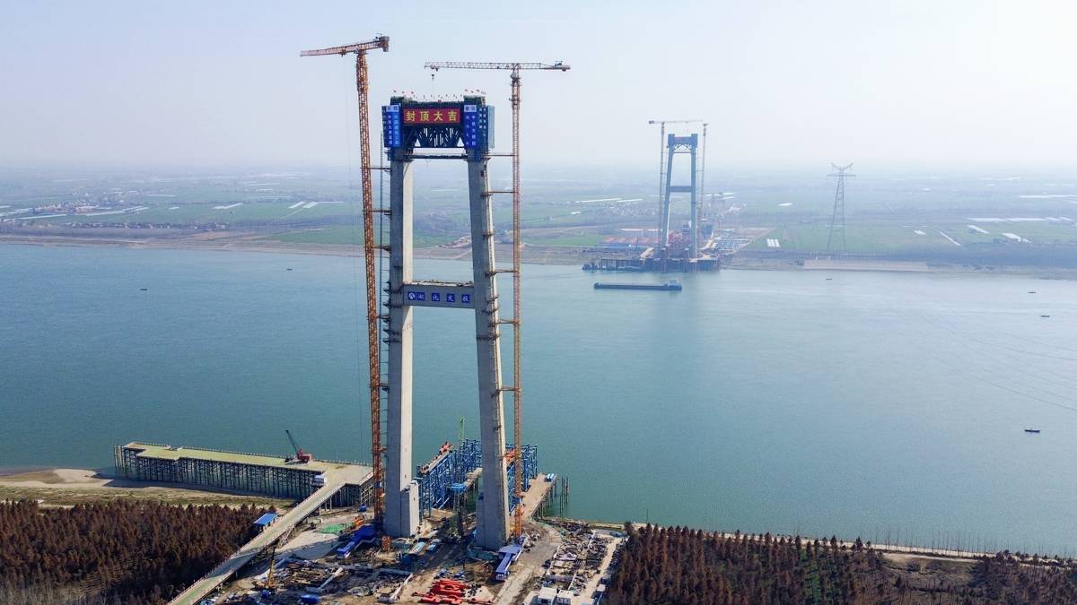 今年1至2月,三大项目累计完成建设投资14.7亿元,占一季度计划投资的70.3%,为全年目标任务的顺利完成奠定坚实基础。其中,李埠长江公铁大桥锚碇施工已完成85%,为后续缆索系统安装提供有力保障。2月9日,大桥南北主塔全部封顶,标志着大桥建设取得关键进展,为后续猫道及主缆架设奠定基础。