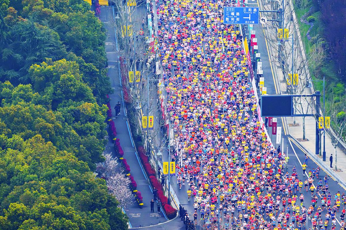 3月22日上午7时30分,2026武汉马拉松正式鸣枪起跑。(湖北日报全媒记者 任勇 摄)