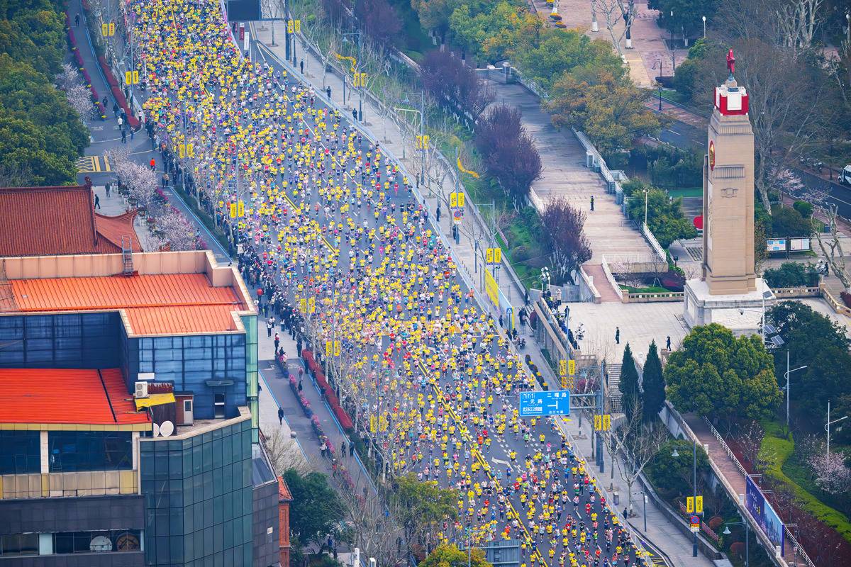 3月22日7时30分,2026武汉马拉松正式鸣枪起跑。(湖北日报全媒记者 任勇 摄)