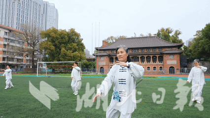 当天,离退休老同志、体育健康学院教师代表、学校武术队还分别在昙华林校区翟雅各、黄家湖校区五行柱正大门、李时珍广场展示太极剑、八法五步。