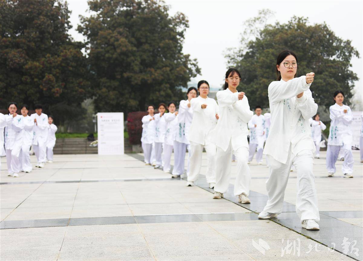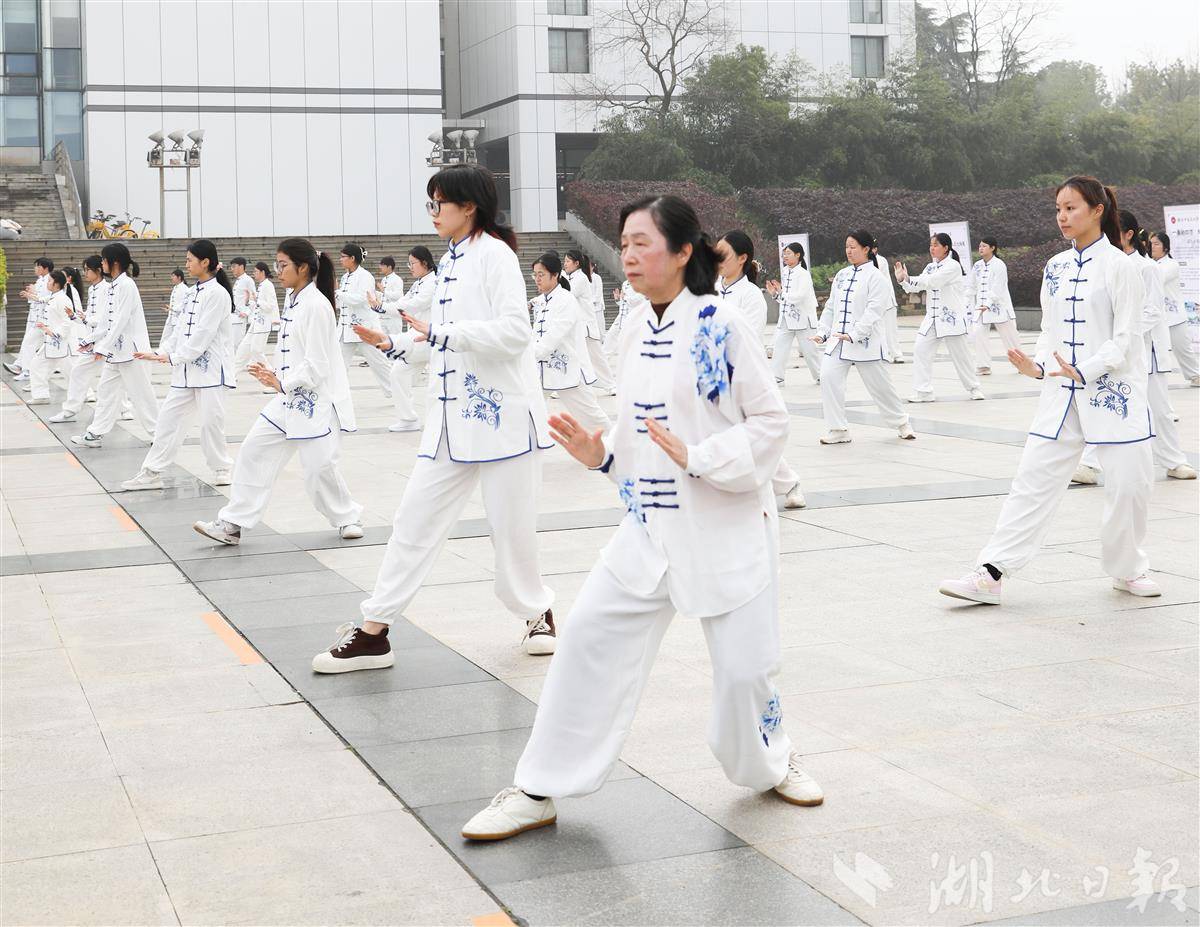 湖北日报讯(记者包东喜、通讯员胡梦佳、姚荣奇、王鹏森)银发师长从容舒展,青年学子意气风发,社区居民欣然同习……3月21日是联合国教科文组织设立的首个国际太极拳日,湖北中医药大学师生组成太极方阵,与附近社区居民一道在该校图书馆广场举行“全民太极”盛宴。