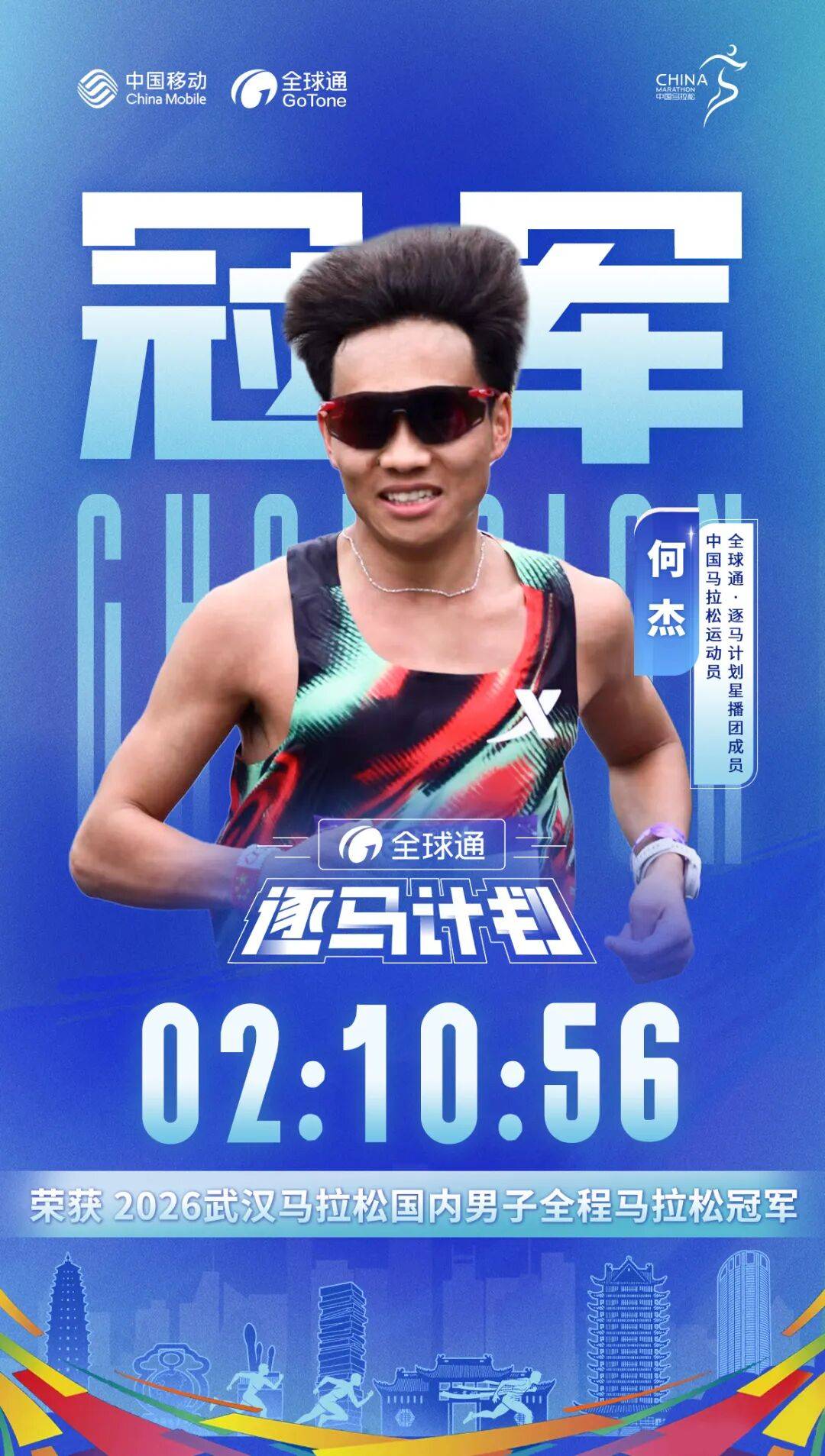 这样的技术支撑,也让“全球通·逐马计划”星播团成员、马拉松精英跑者吴浩然得以带着镜头,以第一视角全程高清记录下武汉樱花赛道的流动之美。过去一年,他的脚步遍及全国——从六盘水的清凉山水,到北京的长安街;从广州的珠江之畔,到厦门的鹭岛海岸,持续为全球通跑友带来各具风情的赛道影像。而这一次,武汉的春日盛景也以沉浸而流畅的方式,呈现在万千观众眼前。正是“体育+科技+内容”的融合探索,让赛事体验突破圈层,也让越来越多人通过这些真实的奔跑视角,走近并开始关注马拉松。