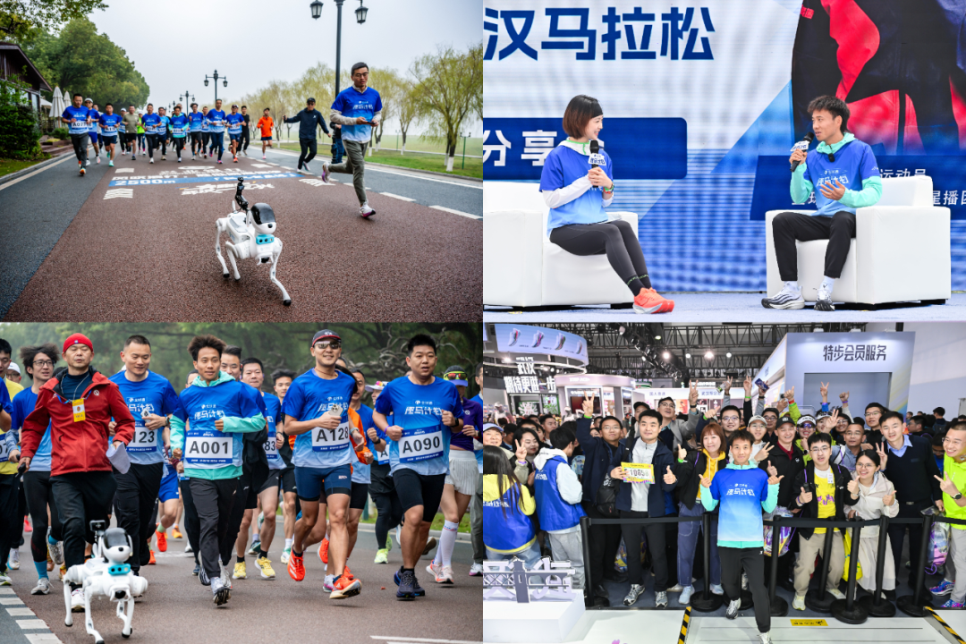 赛事前日,何杰领衔百名全球通跑友,在樱花盛开的中山公园开启晨间早餐跑。跑者穿行春日绿道,伴着花香完成营养补给与专业热身。值得一提的是,中国移动“灵犀”四足机器人首次走出展台,加入真实跑步场景,与何杰一同参与晨练。现场,憨态可掬的机器狗不仅凭借稳定的跟随功能默契伴跑,还能与跑友亲切握手互动,成为全场趣味焦点,引得阵阵欢呼。